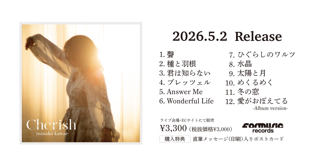 川江美奈子 Original New Album Cherish 発売決定